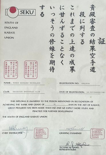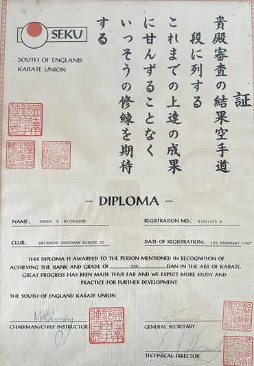 Dan Rank: Robin Nicholson proudly holds a 4th Dan black belt in Karate, and he remains dedicated to continuous improvement in his practice.